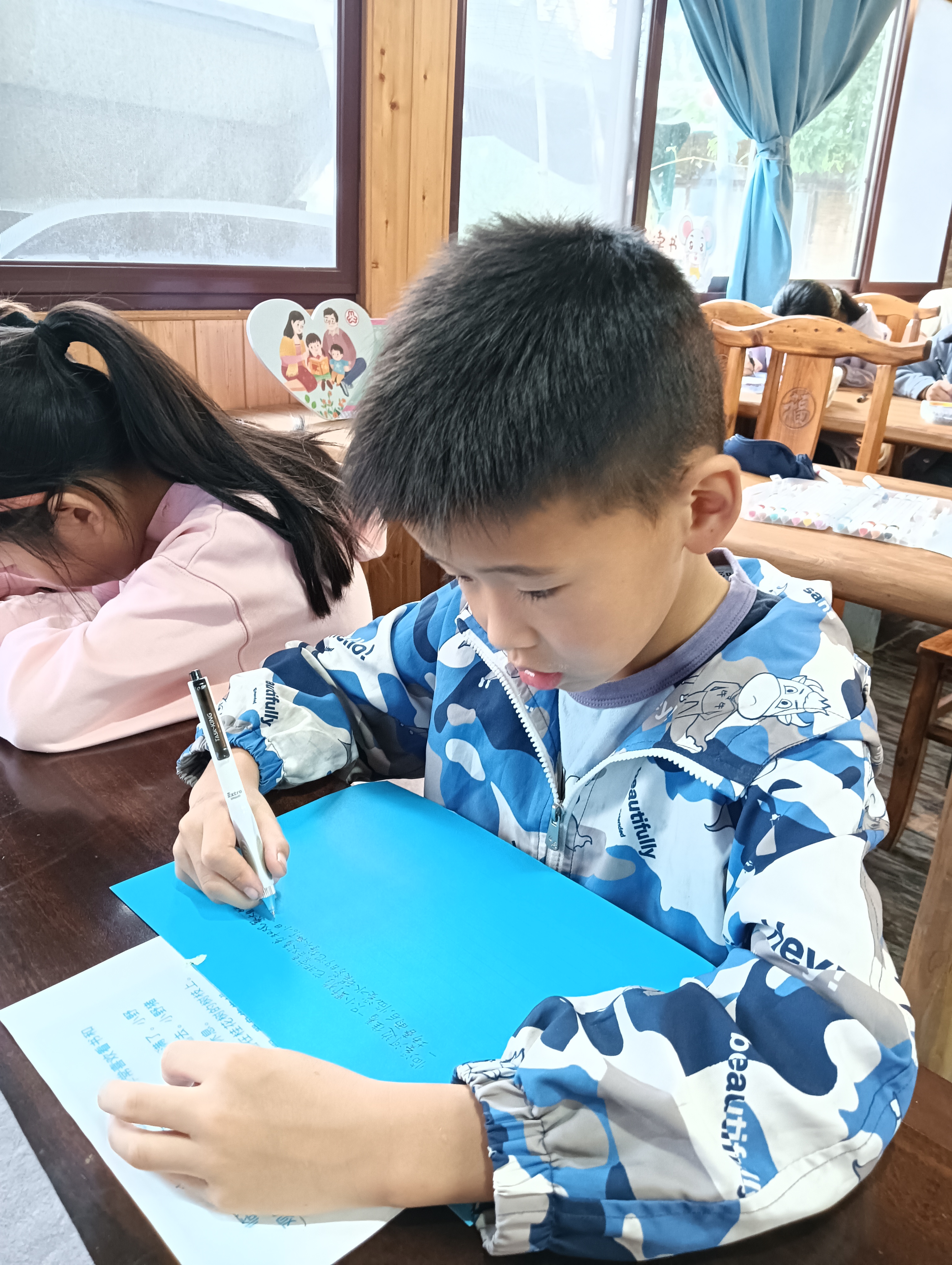 课程为期3天,10月3日开课,但卢树盈的筹备从9月下旬就开始了。“乡村里的孩子,课外资源太少了。”为何选择牺牲自己的节假日为孩子们开课,卢树盈表示:“城里的孩子可以报各种培训班,但我们这里,很多孩子除了课本,几乎没有系统的阅读和写作引导。”也是如此,她决定将自己多年的写作经验转化为公益课程,帮助乡村孩子打开表达之门。