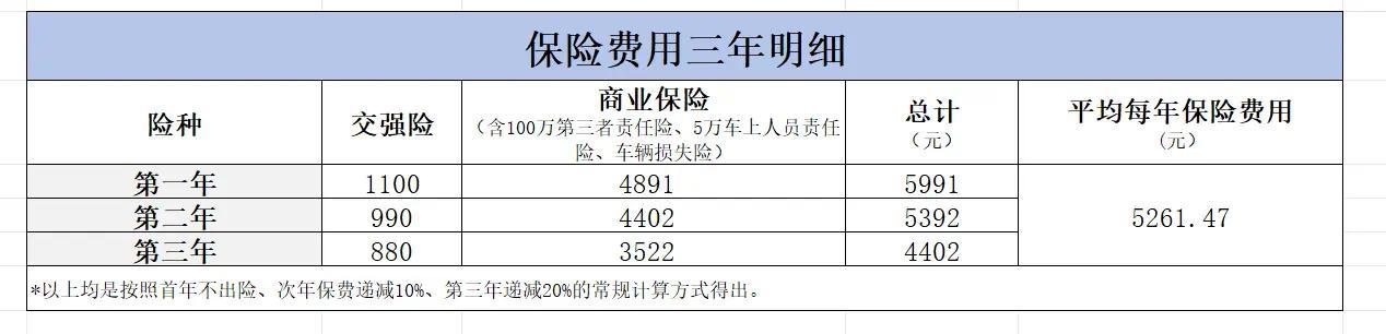 保险是每年的固定支出。新车第一年稍微贵点,全险下来六七千。但只要不出险,第二年保费就降下来了,第三年更低,平均下来一年五千出头。新能源车不用交车船税,这点也挺实在的。