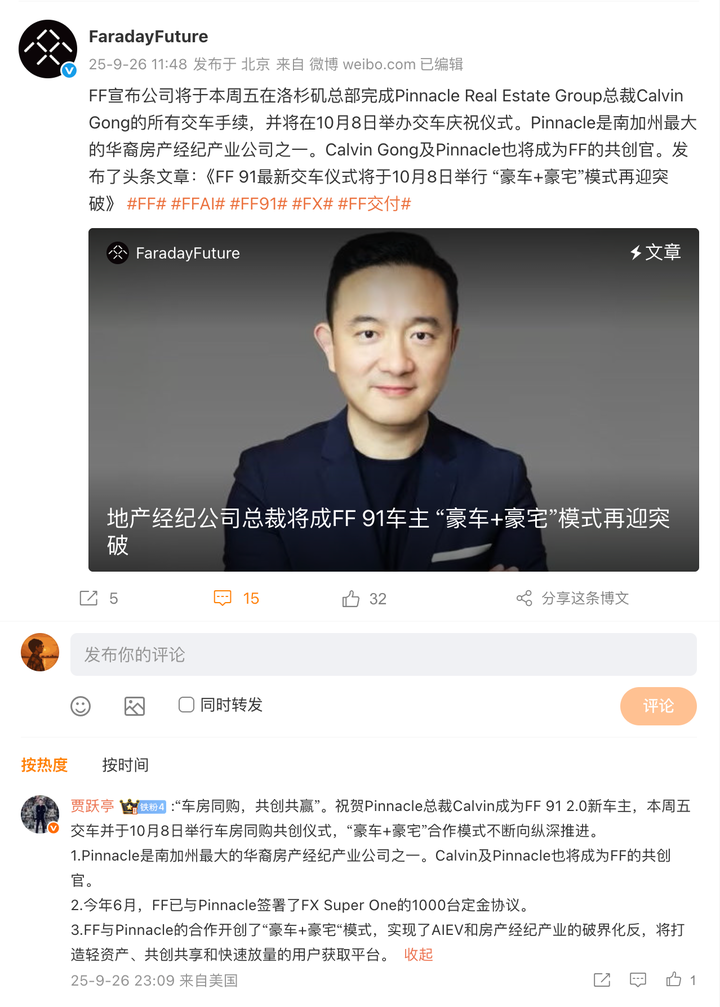 法拉第未来官宣 FF 91 2.0 新车主