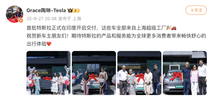 印度首批 Model Y 正式交付,全部来自上海超级工厂